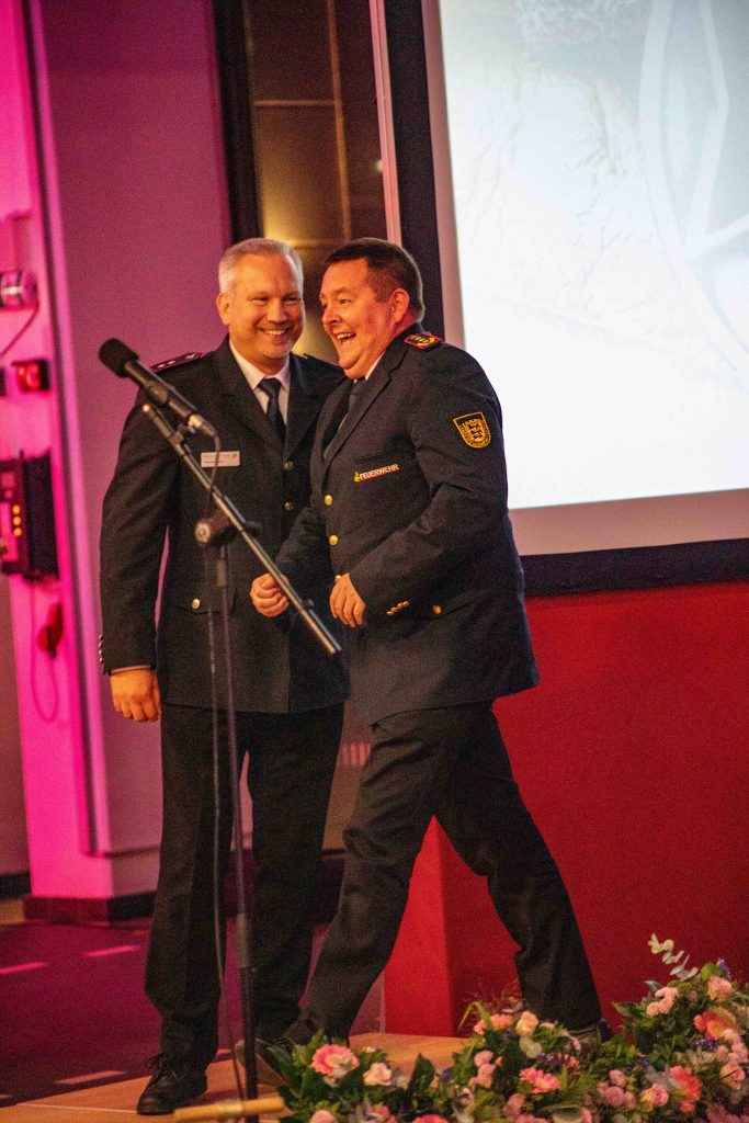 Während die regulären Ehrungen durch unseren Amtsleiter Thomas Näther und unserem Bürgermeister Dr. Volker Proffen geehrt wurden. Durfte unser erste Vorsitzender Andreas Spatz, zusammen mit dem Präsidenten des Landesfeuerwehrbandes Baden-Württemberg Michael Wegel vier Angehörige der Feuerwehren Mannheims mit Ehrennadeln des Landes Baden-Württemberg ehren.